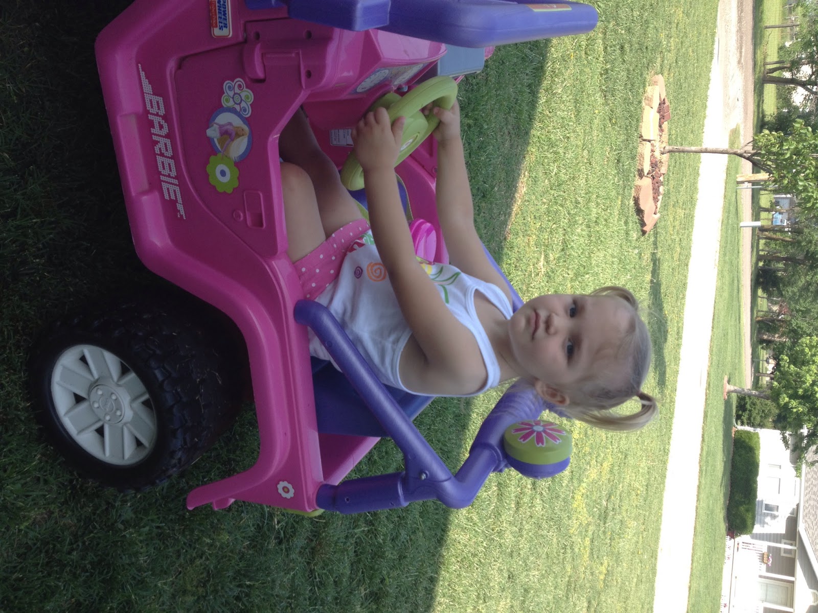 Brooklyn, my cousin's little one came over last week for a few minutes! She loved going for a ride in the jeep! :) That jeep that gma and gpa got her, has sure gotten a ton of use! All the kids love it! :)